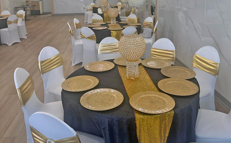 Our experienced team offers event planning services to bring your vision to life. Choose from our elegant 5-course plated service featuring appetizer, soup, pasta, main course and dessert, or select buffet-style or family-style service to suit your event. Our rental service includes your choice of coloured tablecloths, napkins, all utensils, chair covers, and select decorative pieces. You're welcome to bring additional personal décor to customize your celebration.